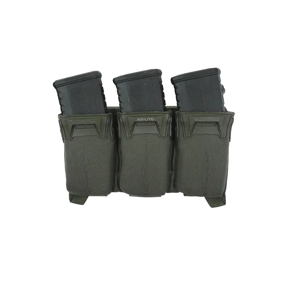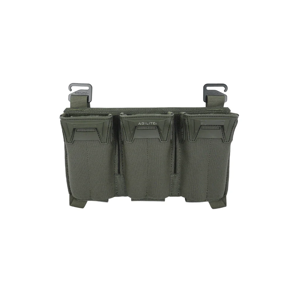 • The Agilite Pincer Placard™ is a hook-backed elastic plate carrier placard that holds three 5.56/7.62×39/PCC magazines or six 9mm extended Glock Mags. Its revolutionary Patent Pending funneled magwell design allows you to grab or re-index a magazine with just one hand while still maintaining rock solid retention so your mags never fall out.
