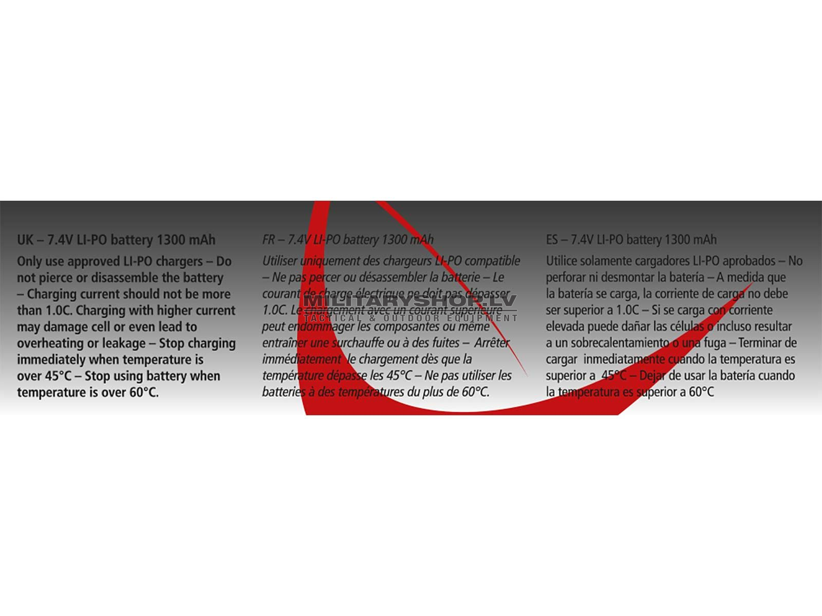 This compact 7.4V Li-Po battery with its slim split-cell construction, lets them be placed practically anywhere in a AEG, even inside stock tubes and SOPMOD/Cranestocks. Despite its small size it still packs 1300mAh. It comes in a handy storage box.
