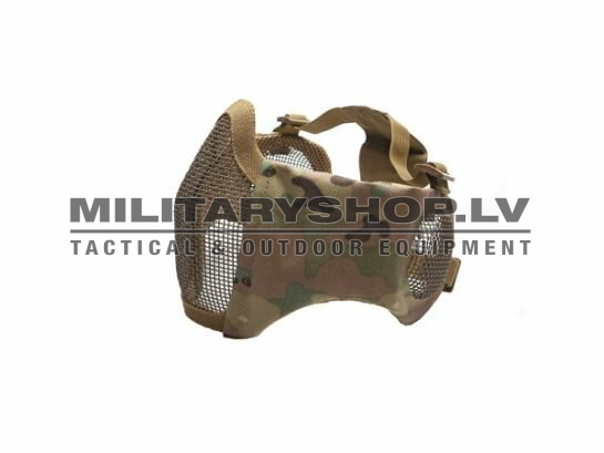 The mask still offers superior comfort and protection. This combo nylon/metal grid mask covers the lower face, features fully adjustable upper, and lower elastic straps as well as rear retention webbing insert, which keeps the straps in place on the head. The soft padded nylon sides of the mask follows the contours of the face and allows easy shouldering of any rifle, so the mask does not get in the way of a clear sight picture. The metal mesh can be adjusted for a perfect fit. Must be used with safety goggles.