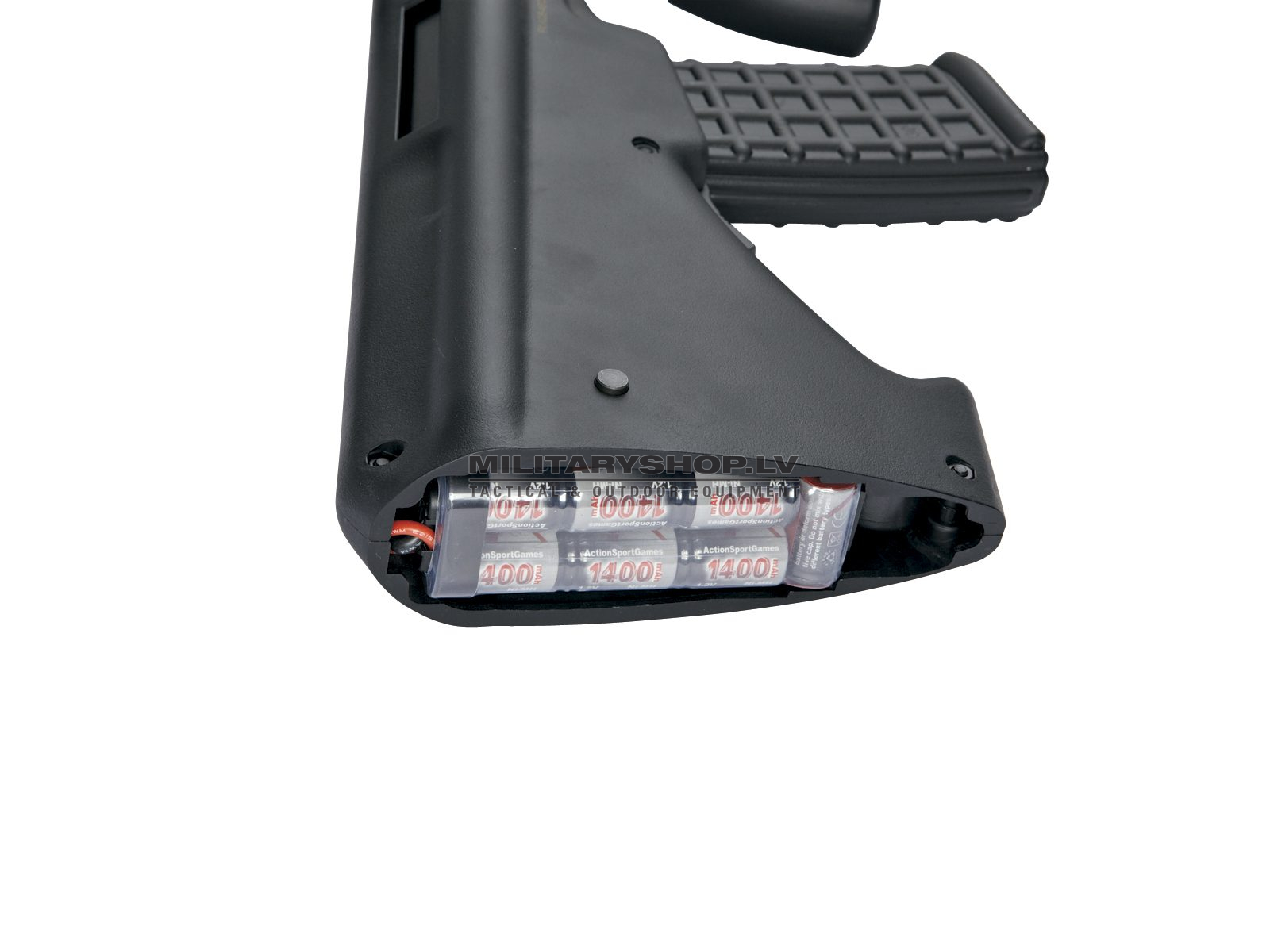 The A2 version of the Steyr AUG is the updated version of the AUG series (Armee Universal Gewehr) licensed by Steyr Mannlicher, Austria. On the A2 you get an accessory rail where you can mount your preferred aiming device. Like on the A1 version the front grip is collapsible and the internals are metal constructed.