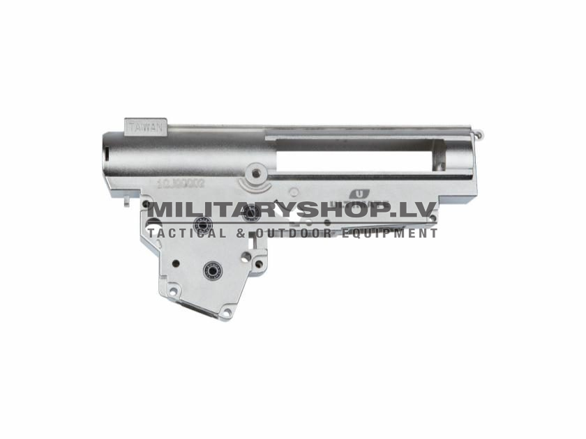 Each gearbox includes high performance, 8mm steel bearings, equipped with taps controlling the lining of the case. This helps prevent the case twisting under stress. Each gear box is uniquely numbered gearbox and comes with an ULTIMATE selector plate, constructed with high-strength hex screws.