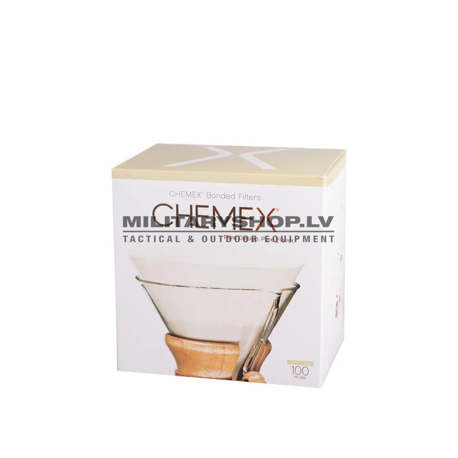 A set of 100 round paper filters designed specifically for Chemex Coffee Maker.Manufacturer: Chemex® Corp., Pittsfield (in Massachusetts, USA).