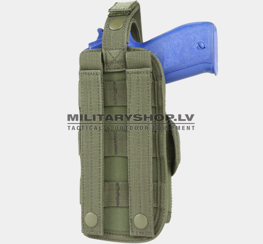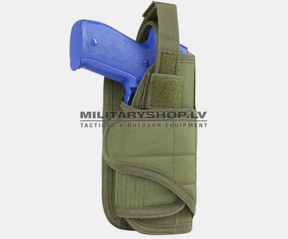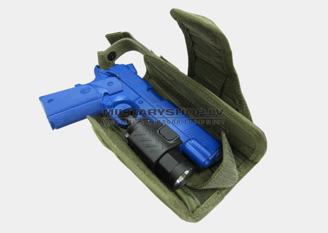 - Wrap-around design to fit pistols with laser or flashlight mount (Max: 5″ Barrel)