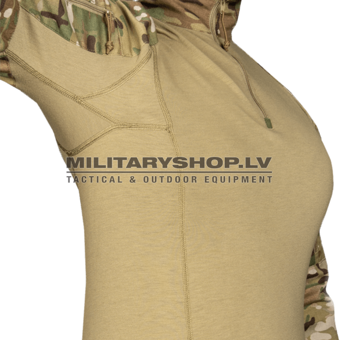 The G4 Female Fit Combat Shirt features the same innovative, custom stretch VTX RIPSTOP™ fabric as the standard G4 Combat Shirt, with a design that is custom patterned to fit our female customers. The G4 Female Fit Combat Shirt torso is constructed with lightweight, high performance, flame-resistant jersey fabric. Invista’s T420 high tenacity nylon fiber cuts weight and increases durability in the sleeves; which feature a reduced circumference and raised armholes for enhanced mobility and a more ergonomic female fit. Designed to be worn under body armor, the integrated stretch allows for a slimmer cut with maximum mobility. The front seam bust shaping and minimized shoulder width provide for a slimmer profile and reduced bulk with the low-profile zippered shoulder pockets still allowing room for all essential gear. Reduced zip collar length for easy donning/doffing. Designed for use with all removable AIRFLEX™ SERIES ELBOW PADS (sold separately). All of this combined provides uncompromised performance built specifically for women. Made in US from US materials.