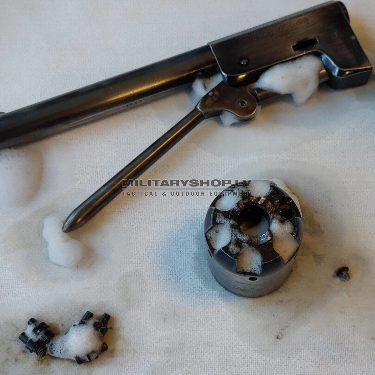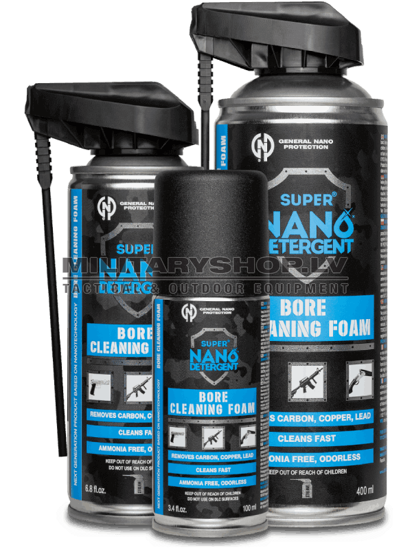 BORE CLEANING FOAM cleaning foam to removes carbon, copper, lead, zinc, perfectly cleans the inside of the barrel in 10 minutes. Highly effective formula quickly and safely cleans the barrel. The product does not contain ammonia and does not emit toxic fumes, does not ignite. Safe to use indoors especially when toxic fumes are an issue. Meets all industry standards for small arms maintenance. It is harmless on metal, wood, paint, varnish, ceramics, rubber, plastic.