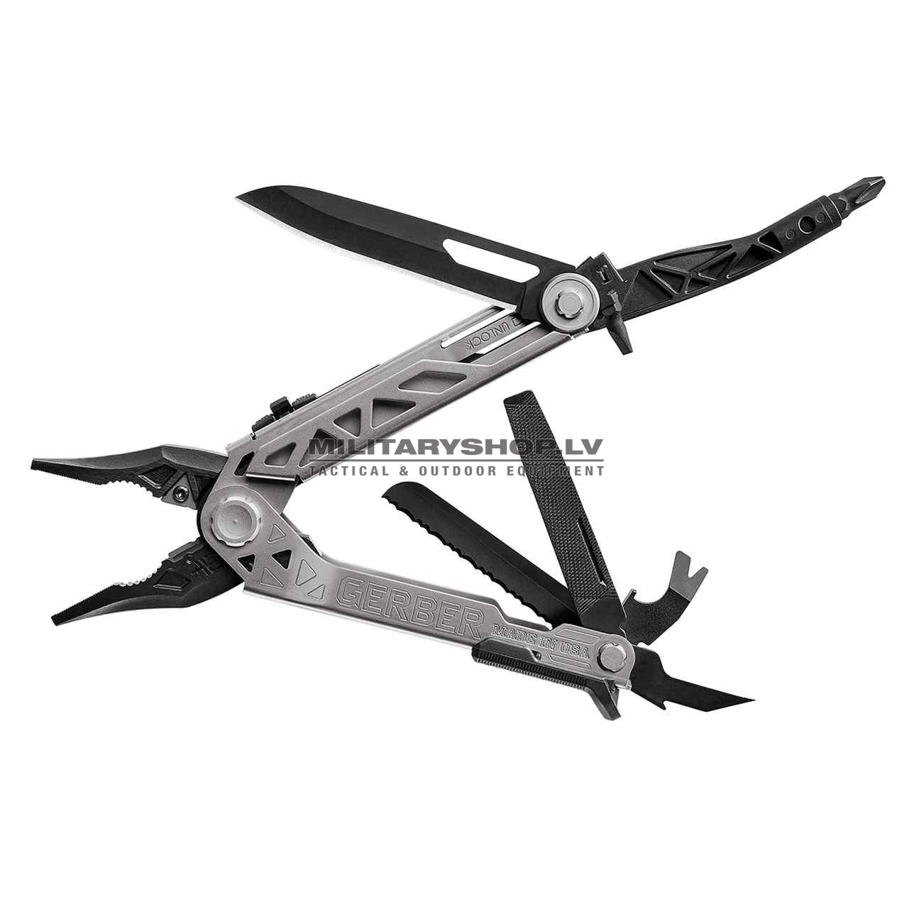 Gerber’s new multi-tool offers uncompromising performance through revolutionary design. The innovative center-axis driver opens to align like a real screw driver, yielding maximum torque and rotation. No productivity is sacrificed with the addition of a 30% longer outboard blade and one-thumb opening sliding jaws. Full size, real tools – the multi-tool just got a reality check.
