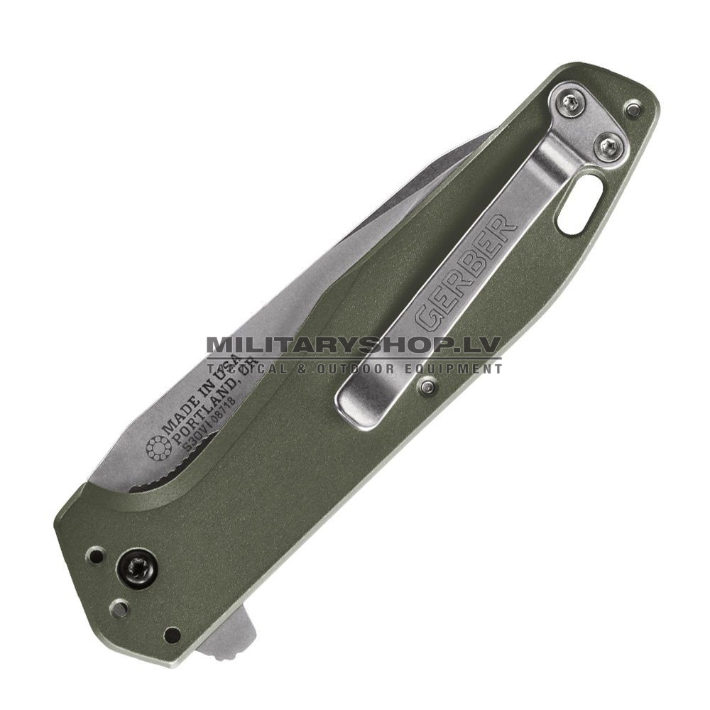 Gerber Fastball FSG special design convenient and functional knife for everyday use. The blade of the knife is made of S30V steel, which keeps sharpness for a long time, resistant to corrosion. Blade length 7.6 cm. B.O.S.S. was used for faster blade opening. – Stainless steel ball bearing – technology, thanks to which the knife can be opened easily and easily, even if the hands are in gloves, the blade can be opened with both hands. Stainless steel pocket clip can be secured in 3 positions. The Gerber US Assist S30V, like the other higher quality Gerber knife, is manufactured in the United States, Portland, Oregon.