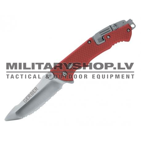 Gerber Hinderer Rescue, Red Nylon Handle, Serrated