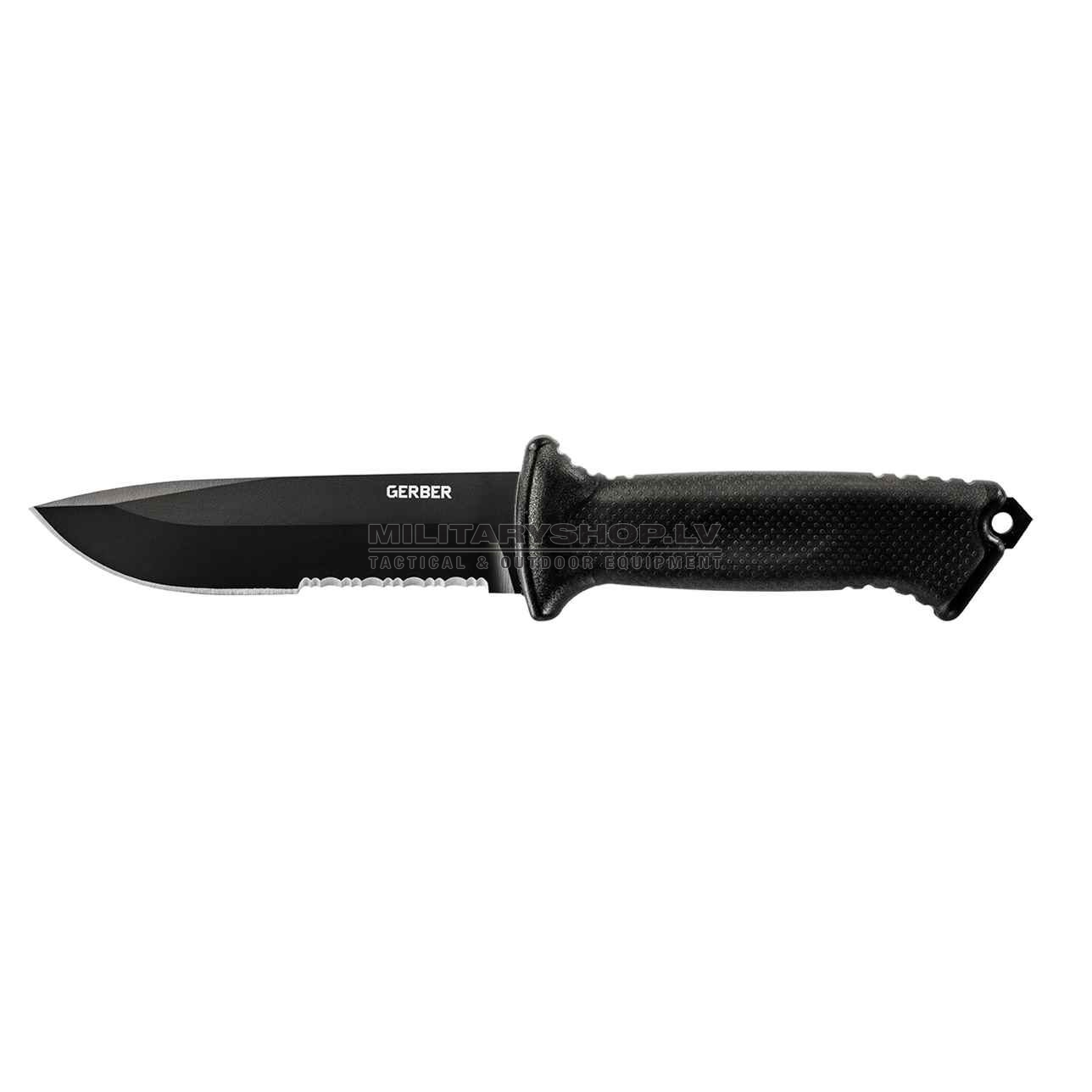 Based on the award-winning LMF II, this smaller knife packs the same punch. The full tang 420HC American steel blade is beefy, coated with ceramic for corrosion resistance and reduced visibility. A friction lock, MOLLE compatible sheath is included.