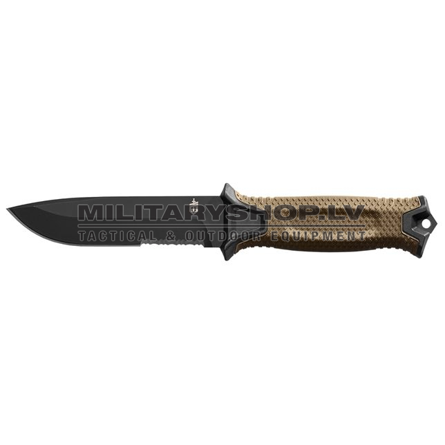 This durable knife is designed for professional everyday use. Great for hunters, active hikers and others. The knife is made of 420HC steel with black ceramic coating. This coating gives the knife extra protection against corrosion, removes shine and reduces friction, making it easier for the knife to slip through the material to be cut. The handle is made of fiberglass plastic with a non-slip Softgrip ballistic rubber coating. Softgrip coating provides a strong grip in all conditions. The pointed metal protrusions on the back of the handle are used to break the glass. The knife is equipped with an insert made of polymer material. This knife insert can be attached to a standard 4.45 cm wide belt both vertically and horizontally and is compatible with the Molle system. The Gerber Strongarm Coyote FE, like all military tactics, is manufactured in Portland, Oregon, USA. The Gerber Strongarm Coyote FE will be appreciated by anyone who needs a knife for everyday use, but also for serious use.