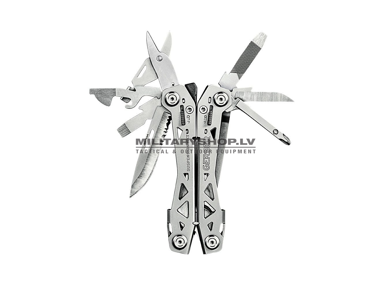Inspired by the bridges of Gerber’s hometown in Portland, Oregon, the Suspension is an open frame multitool with spring-loaded pliers, our SAF.T.PLUS™ locking system, a fine-edge knife, serrated knife, rough cut saw and more. Housed in a ballistic nylon sheath, it’s a lightweight down-and-dirty workhorse.