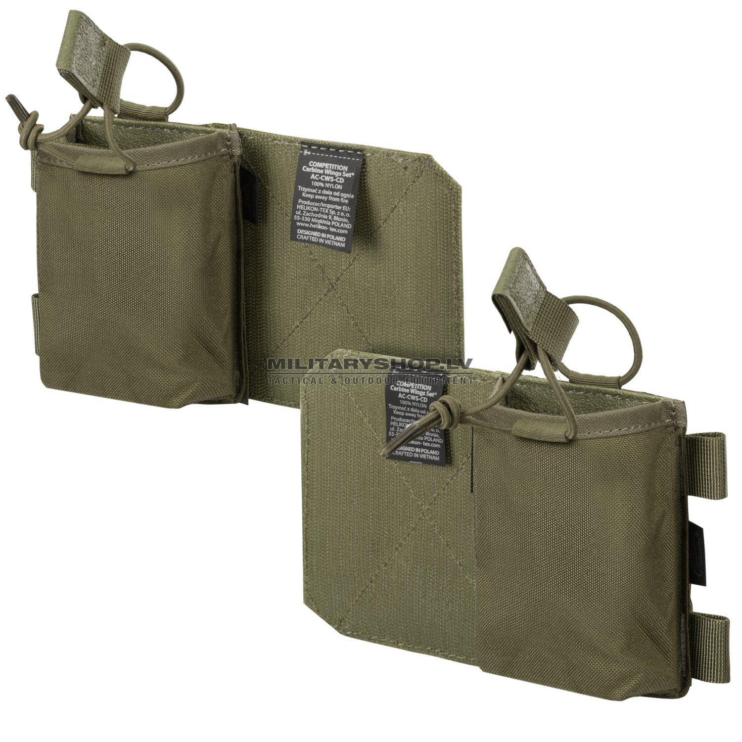The COMPETITION Carbine Wings Set was designed to enlarge the COMPETITION MultiGun Rig capability to carry extra ammunition. The wings attach directly to the velcro on the back of the rig. Additionally, the buckles from the rig goes directly to the side webbing loops on the wings to make it even more stable. The wings were designed to fit one carbine magazine each (will fit standard AR/AK magazine). Anti-slip interior prevents the mag from falling out.