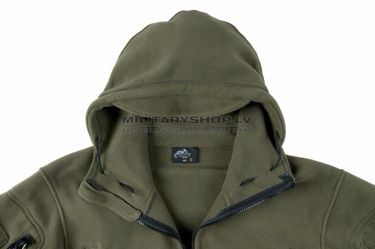 Patriot Heavy Fleece Jacket is the most advanced of our fleece jackets offer. It is designed for tactical use in extreme weather. The jacket features an adjustable, small-visored hood, for additional protection, as well as a set of pockets for tactical essentials. Breast pockets have wiring eyelets and small devices organizers. Three external pockets in easily reachable areas – on either upper and left lower sleeve – would allow additional storage. Elbows are reinforced for additional wear and tear resistance. Jacket can be individually adjusted by Velcro-adjustable cuffs, and elastic drawstrings in hood and jacket bottom. Patriot is a versatile and durable upper apparel suitable for cold climes.