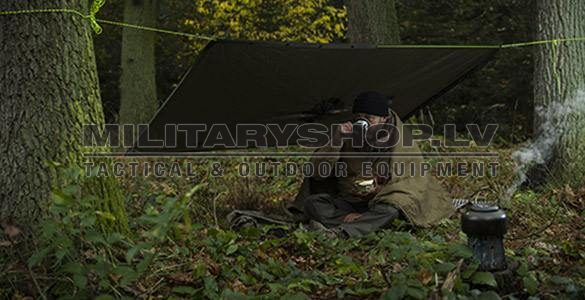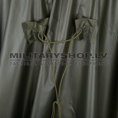 Rainproof, quick-drying poncho, made of rip-stop polyester. It has press studs which enable to make sleeves or connecting two ponchos together. The hood is fitted with a cord adjuster. The great advantage of this poncho is its light weight and small size when folded & when compressed, the poncho fits into 14 x 22 cm bag.