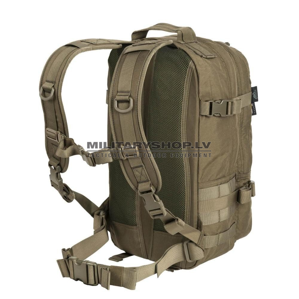 New generation of the Raccoon® backpack incorporates users feedback and our experiences with this model. Lightweight, yet sturdy 20 Liter capacity pack is an optimal choice for everyday use, yet it is absolutely enough for day hikes and tactical ops, where a larger pack would be an unnecessary burden. Raccoon Mk2 Backpack® has one external pocket, the size of the main compartment. Inside is a simple organizer for carrying additional items. The main chamber has one flat internal pocket and a camelbak holder. For heavy loads the simple, webbing hip belt distributes weight properly, while the straps allow for quick jettisoning the load. The outside is covered with webbing compatible with MOLLE/PALS system. Shockcord allows attachment of additional equipment like jackets, sleeping mat etc. At the bottom are two compression ribbons. Thoroughly redesigned layout, materials used and high quality make Raccoon an ideal backpack for both special ops and EDC.