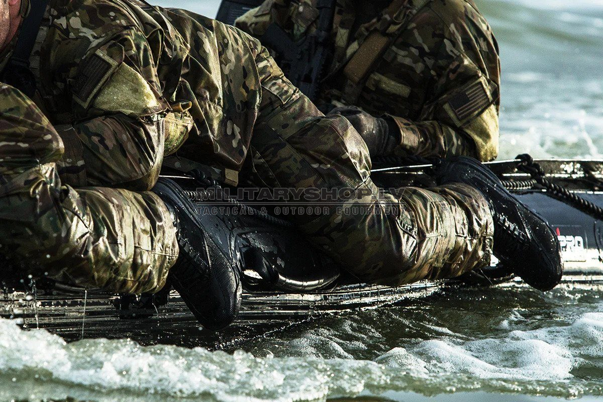 The Ultimate Special Forces Tactical Boot. The Shadow Amphibian is made in conjunction with the Navy SEALs and for military operatives to use while in the air, on land and while swimming. The passive drainage system is not designed to keep the water out, but to let it flow in and out of the boot as needed.