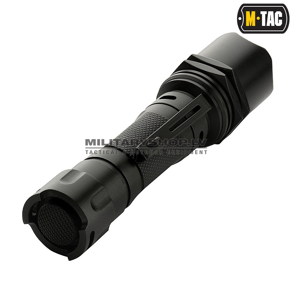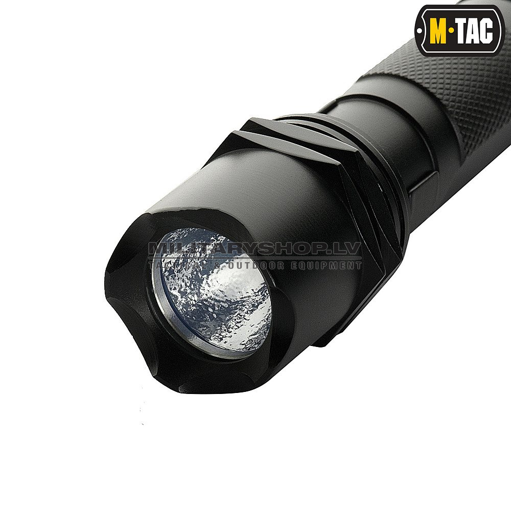 Strong tactical flashlight M-TAC with a luminous flux of 250 lm. A well-focused LED allows you to view objects from afar in the dark and perfectly illuminates indoor spaces.