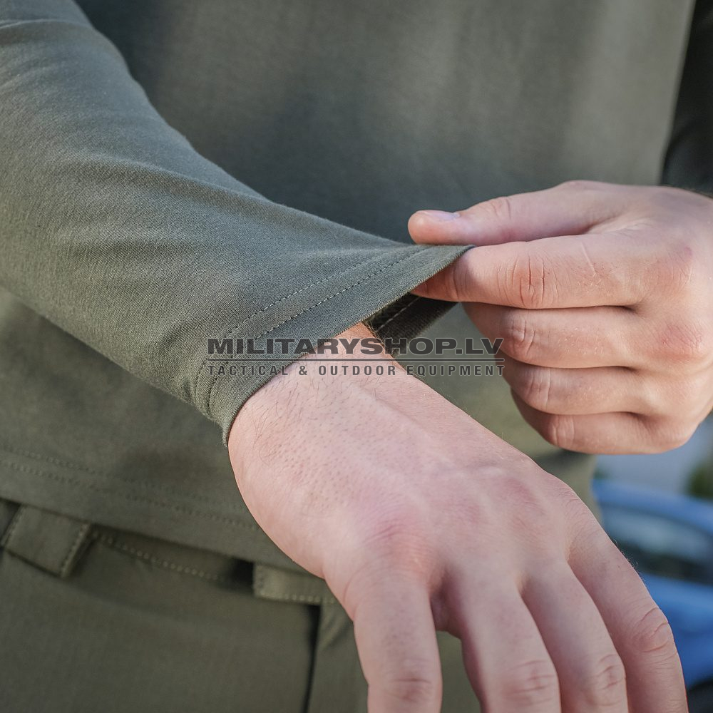 M-Tac long-sleeve T-shirt is made of 93% cotton, the remaining 7% is “elastane”. Thanks to this, the T-shirt can withstand a lot of washes and does not lose its shape. A T-shirt is a must-has for any man’s wardrobe. The area of application of our T-shirts is huge – from everyday wear to use as uniforms for military units and security forces and for people who lead an active lifestyle and like hunting, fishing, sports, tourism. Thin, elastic, and high-quality knitwear successfully emphasizes the relief of the muscles and gives a complete feeling of comfort.