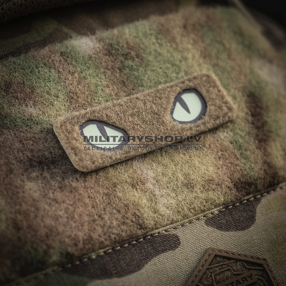The M-Tac Cat Eyes Patch is an original morale patch that will personalize your gear. The patch depicts the cat’s eyes, which are made using the Laser-Cut technology. Also due to the light-accumulating elements, they glow in the dark and attract attention.