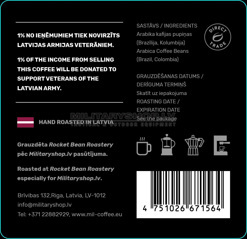 Roasted exclusively for Militaryshop.lv by Rocket Bean Roastery.