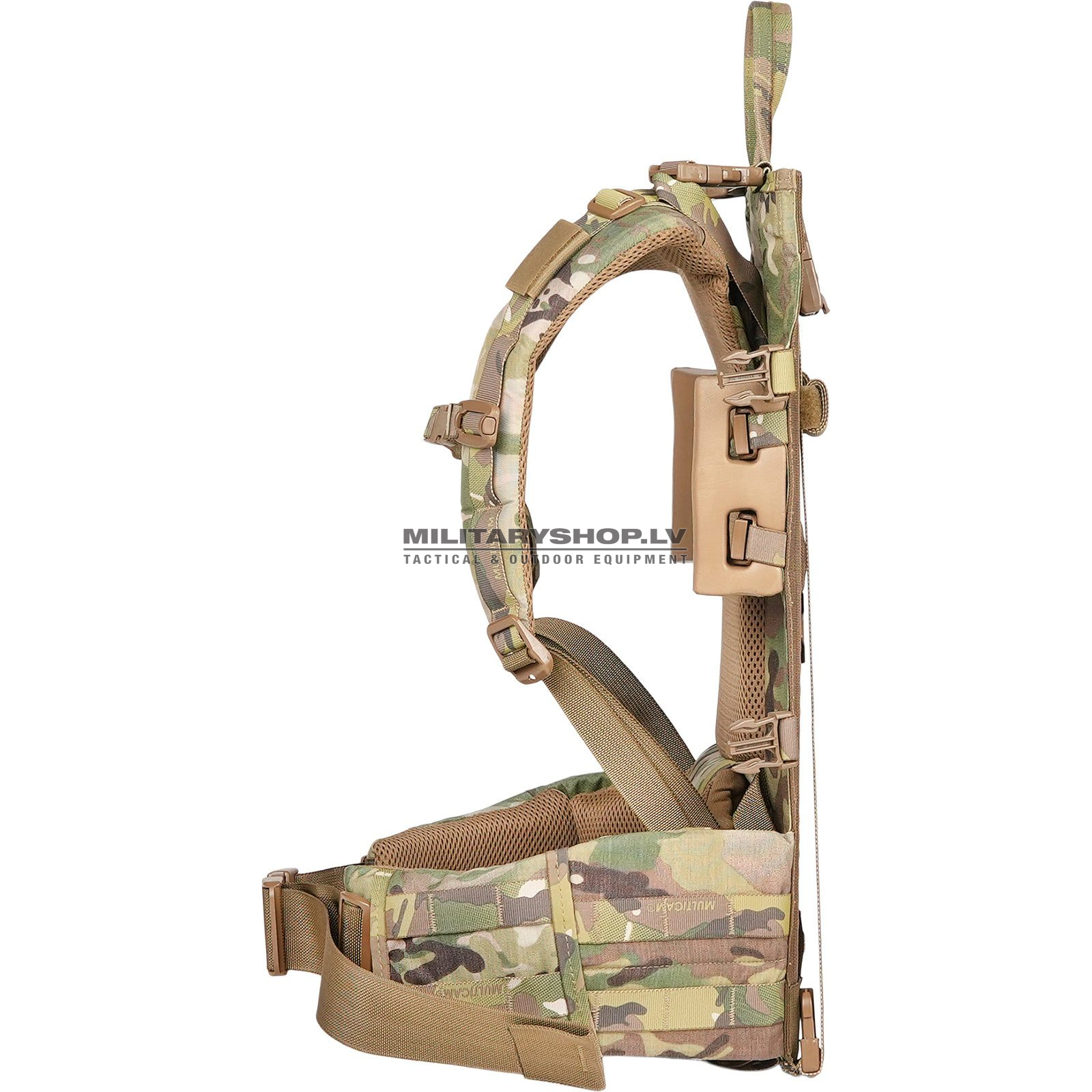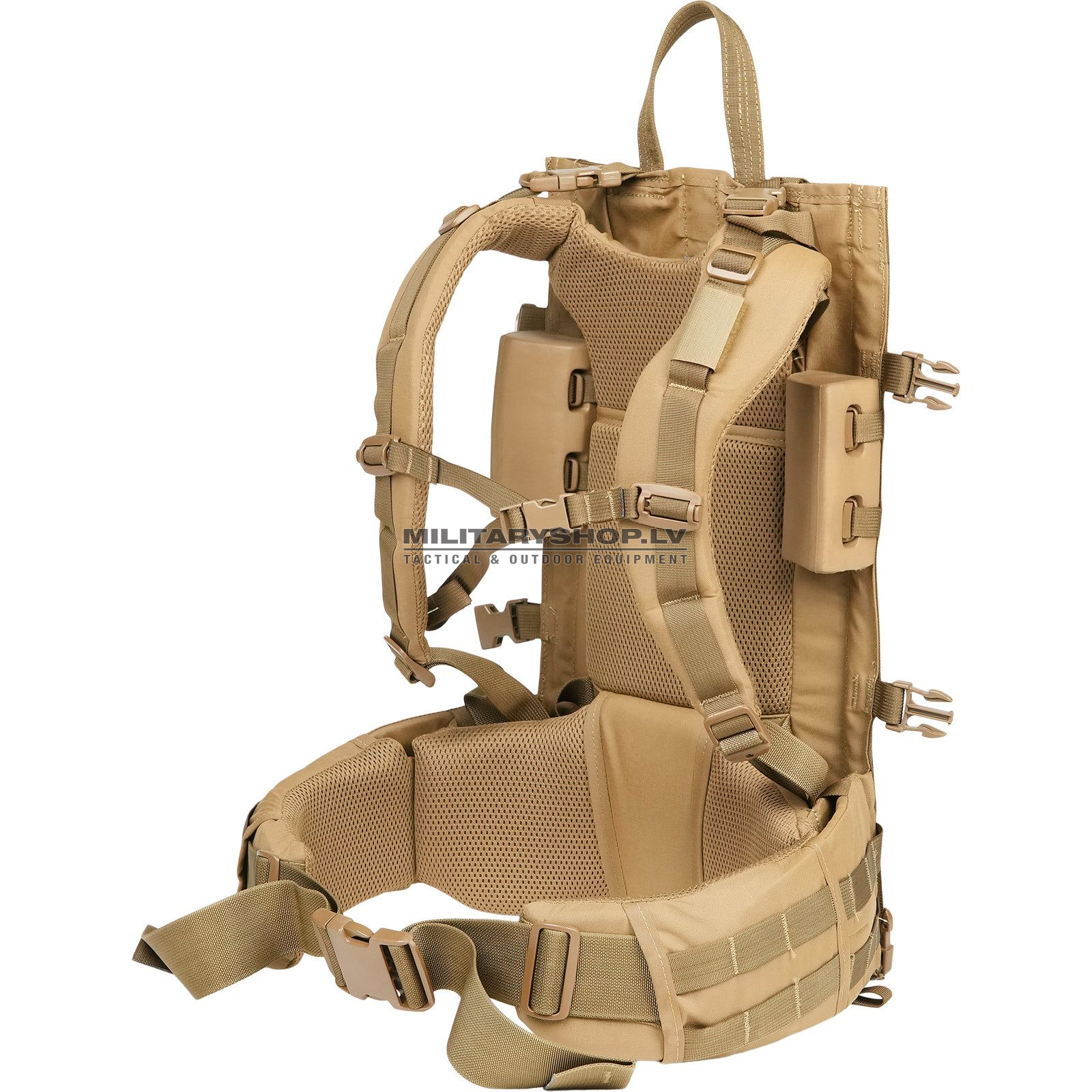 The NICE frame has many patented features that make it effective at carrying loads comfortably for military operations. Starting with great fitment, each size of our Futura Yoke has eight inches of adjustment to accommodate a wide range of torso lengths. This ensures the weight is kept off the shoulders and transferred to the hips. The design of the waistbelt keeps it in contact with the lumbar, even when not buckled. The framing allows for torsional movement, but its three vertical and horizontal carbon-fiberglass stays are rigid in the vertical plane to transfer the load down efficiently. To keep your pack secure over body armor, our BVS system stabilizes each side of the pack against your plates to maintain stability under heavy loads. The NICE frame gives military users the durability, stability, and custom fit that increases operational success.
