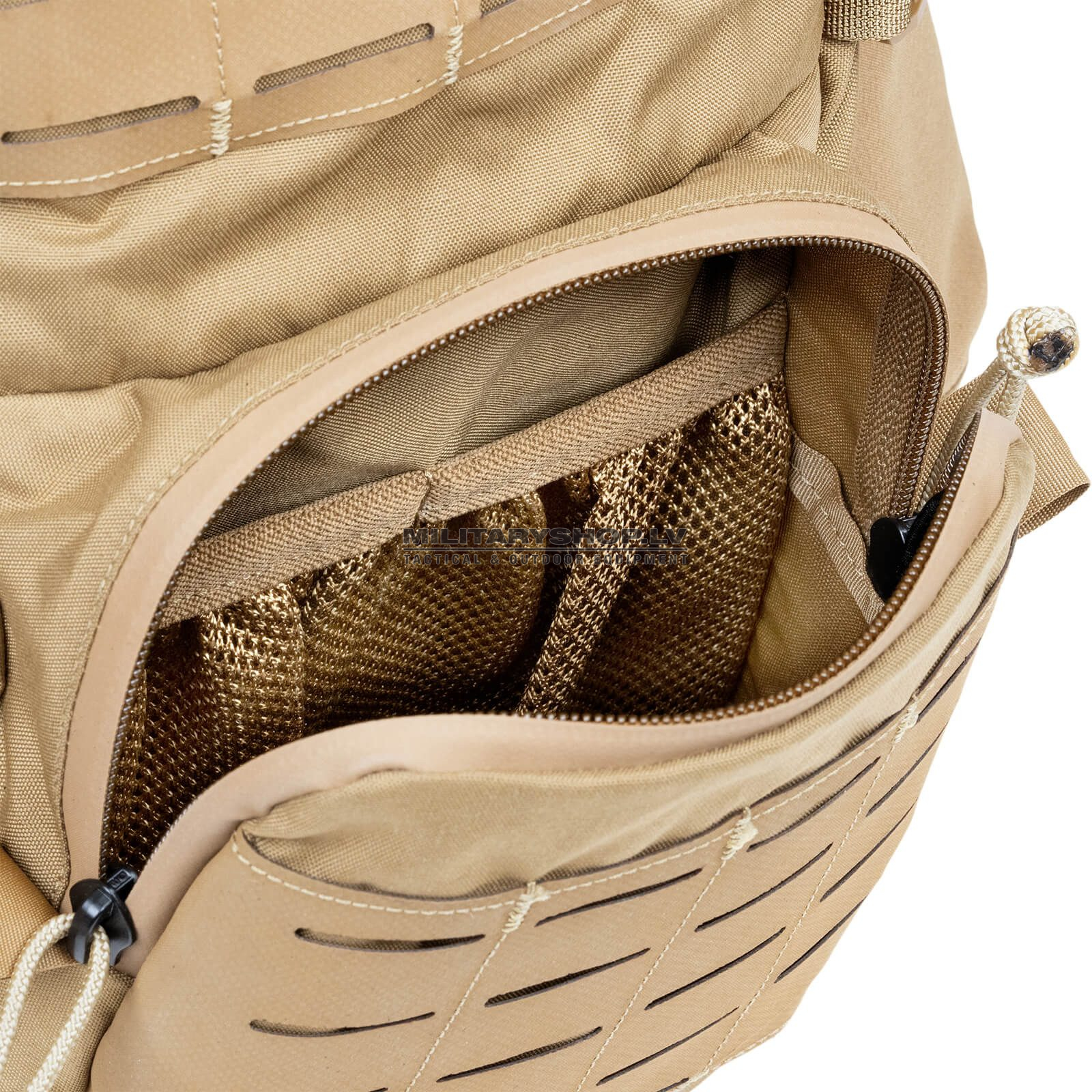 - Two laser-cut PALS panels on front pocket for MOLLE accessories