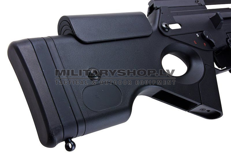 - Futuristic DMR stock with adjustable cheek rest (Adjustable with an additional set)
