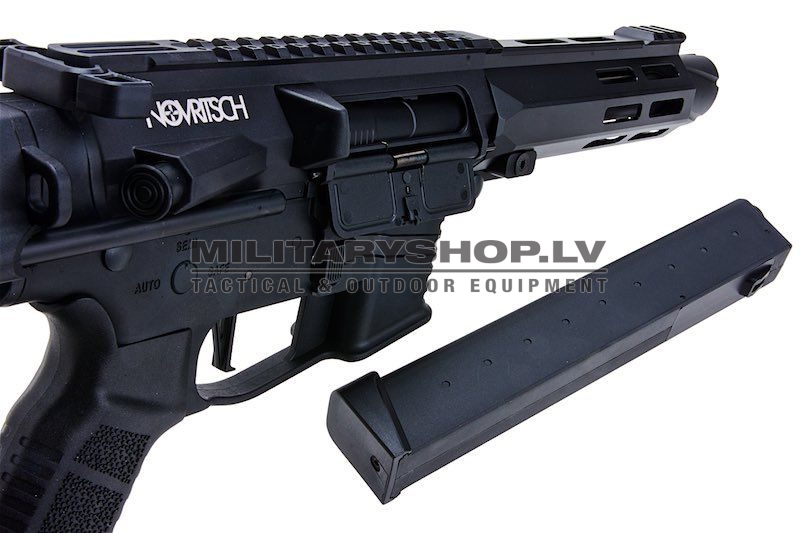 - Polymer body with top Picatinny rail for accessories and CNC aluminium slotted Handguard