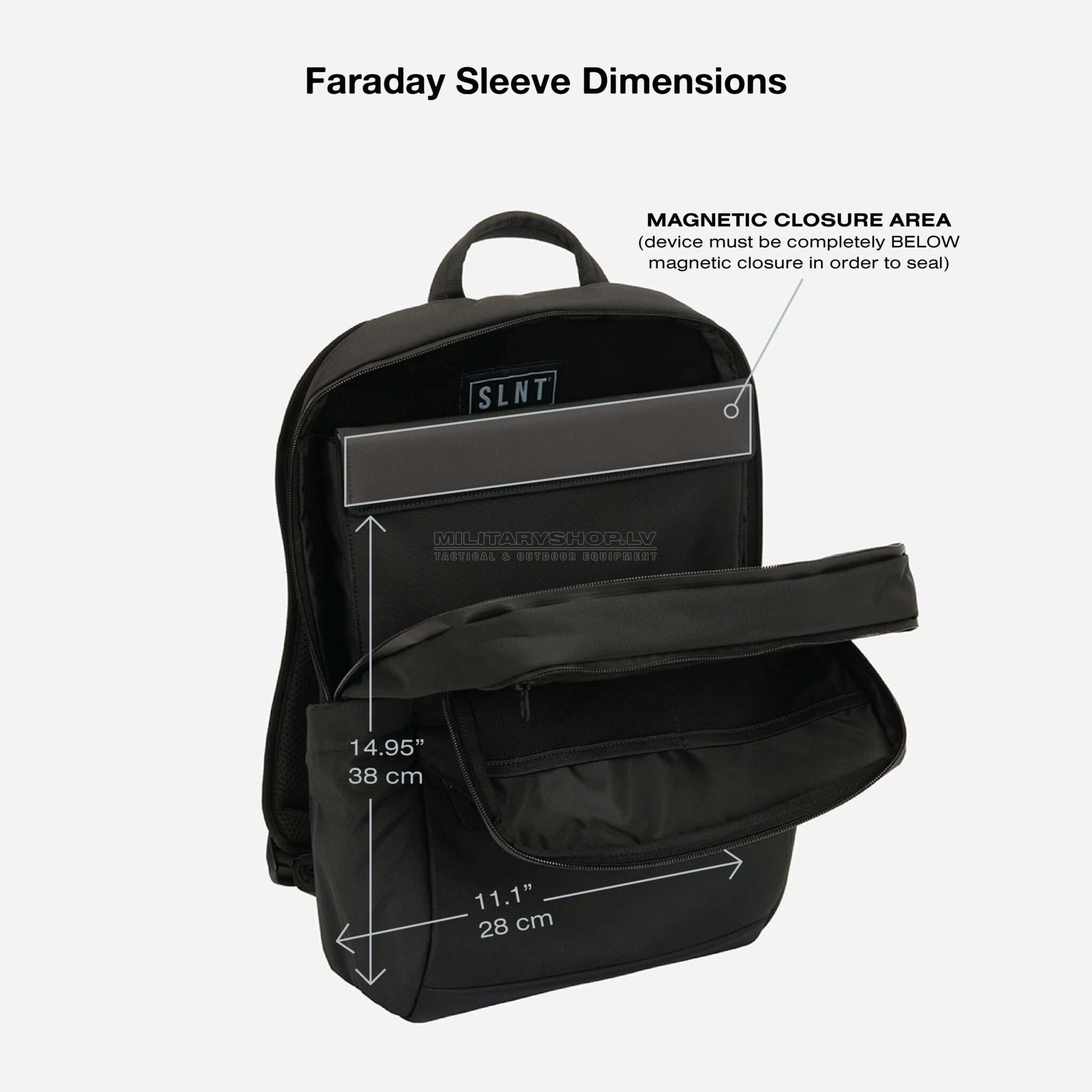 • Patented Silent Pocket® Faraday Cage laptop sleeve with magnetic closure