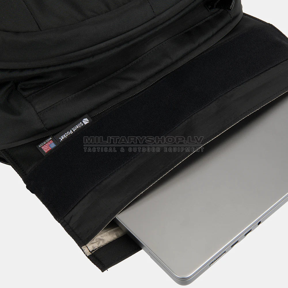 - 1 removable Silent Pocket® Faraday bag with roll down velcro closure for 16” laptop