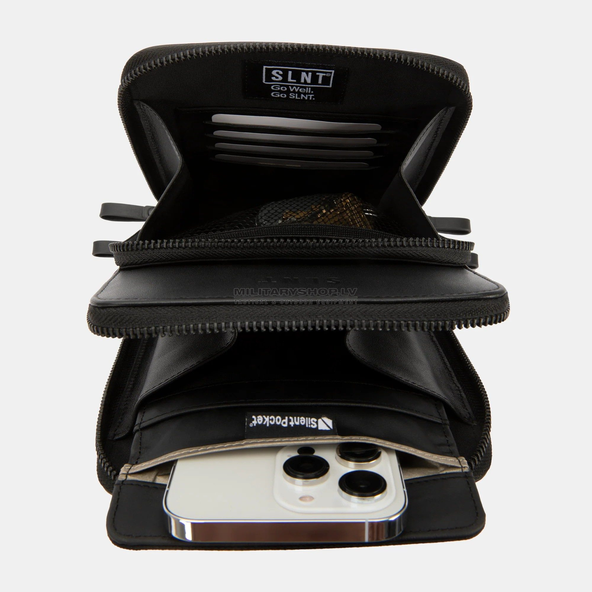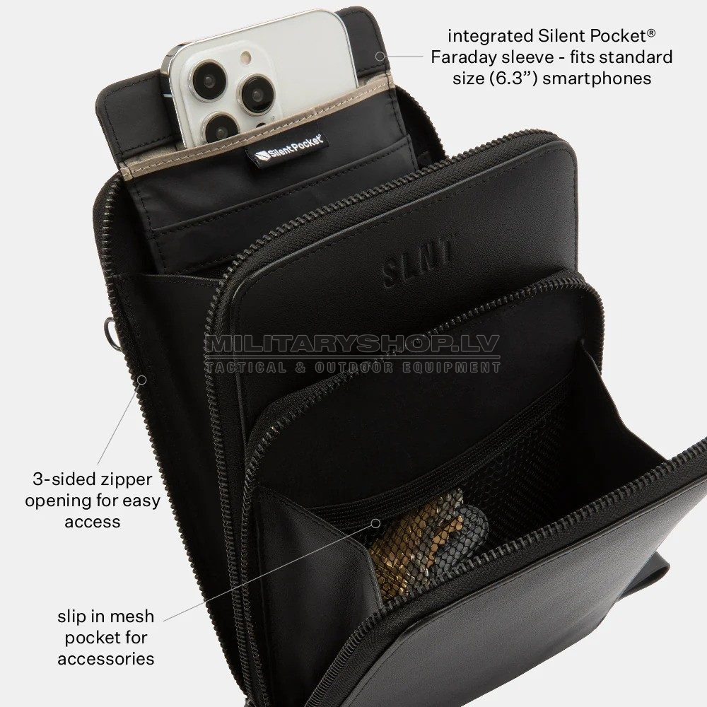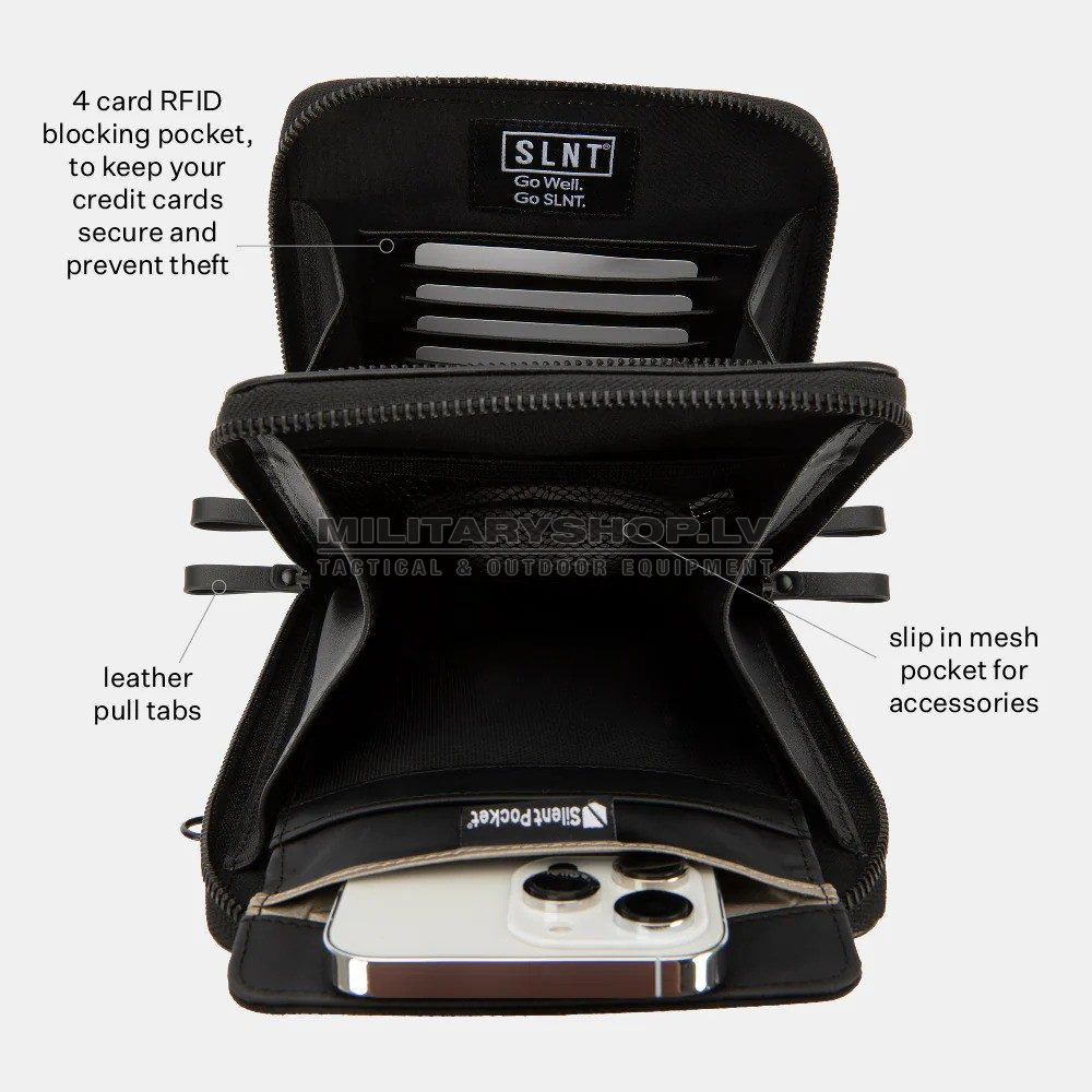 - Embedded Patented Silent Pocket® Faraday cage with magnetic closure