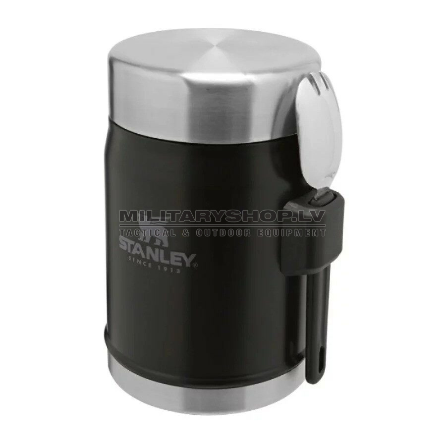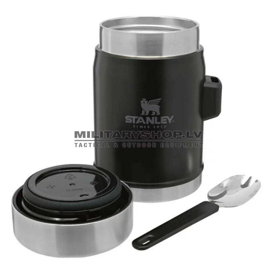 This on-the-road or at-the-campsite food jar has all the bells and whistles. Compact—but with plenty of room for your favorite hot or cold recipe. An insulated lid with a pressure-release valve for easy opening. The wide mouth opening of the vacuum insulated food jar makes filling, pouring, and cleaning easy. Every piece of this stainless steel food container is dishwasher safe, top rack only. And last but not least, a stainless-steel spork that fits securely into the attached bracket on the side. Bon appétit!