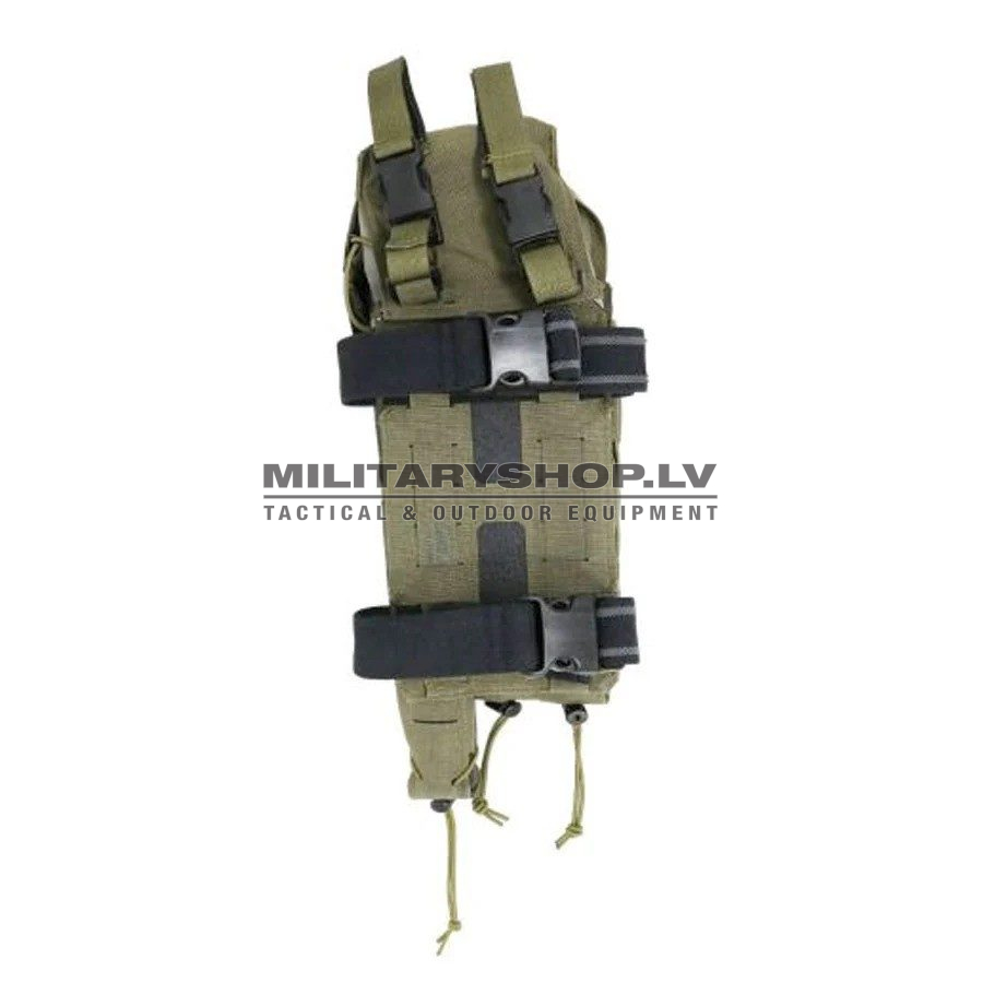 1. As a leg holster with adjustable shoulder sling to balance the weight from the belt.