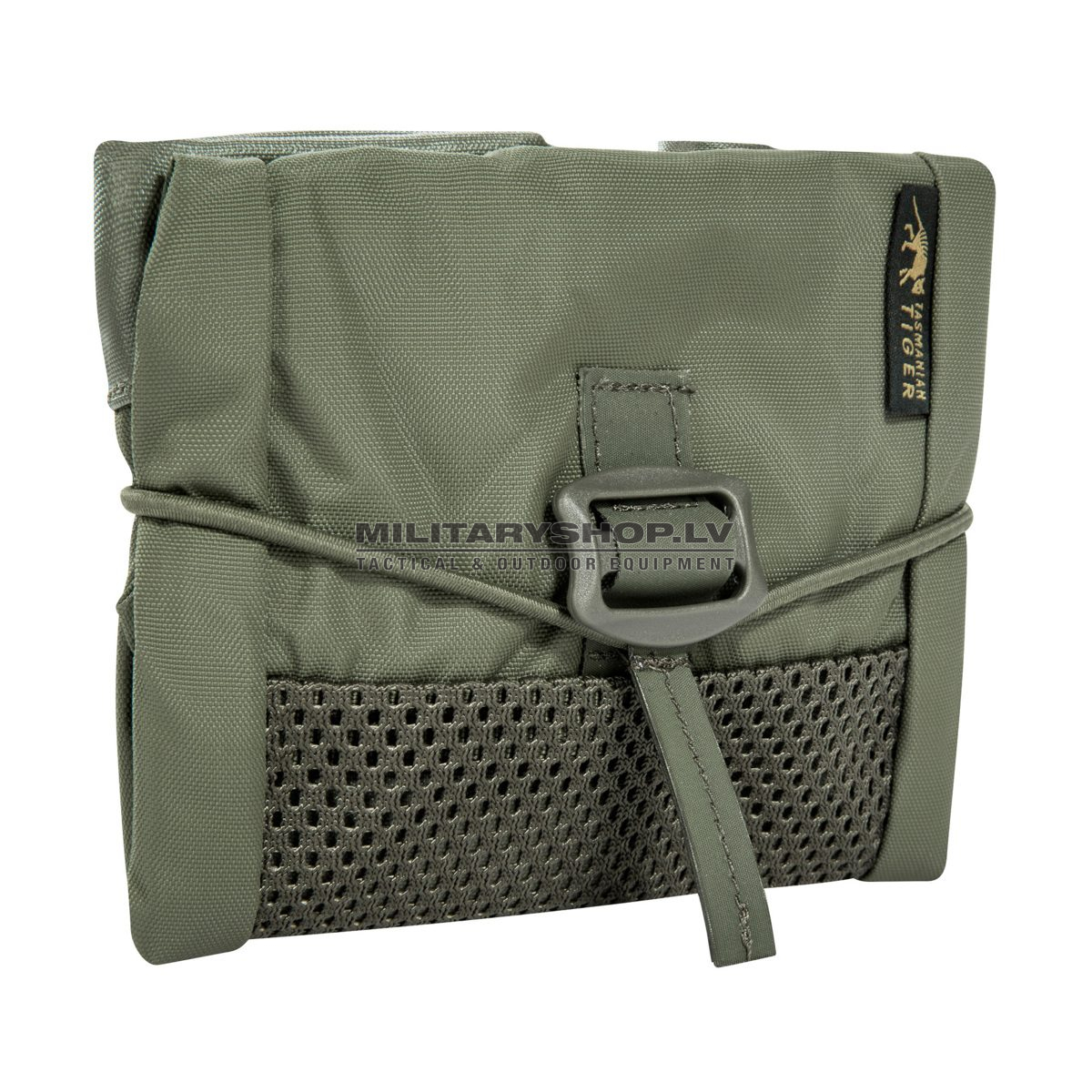 The pouch has a mesh bottom for quick water drainage. Inside there is a fastening possibility for a M4 magazine pouch or two pistol magazines. The Dump Pouch can be operated even when it is folded.