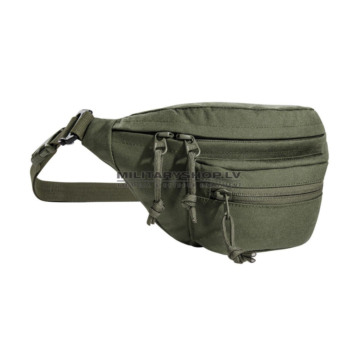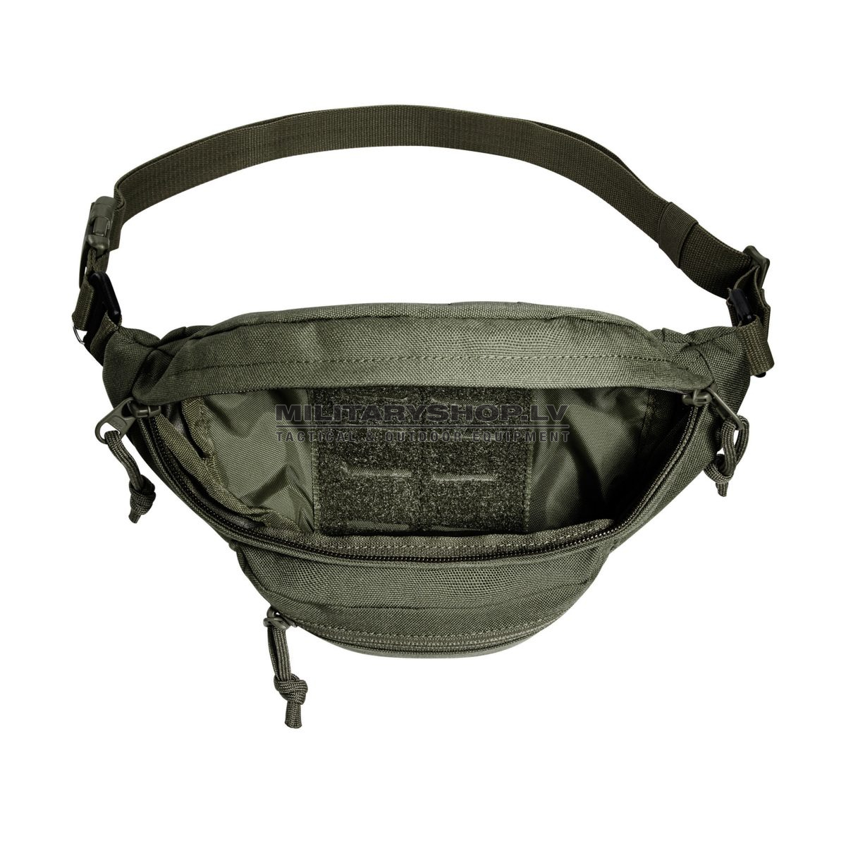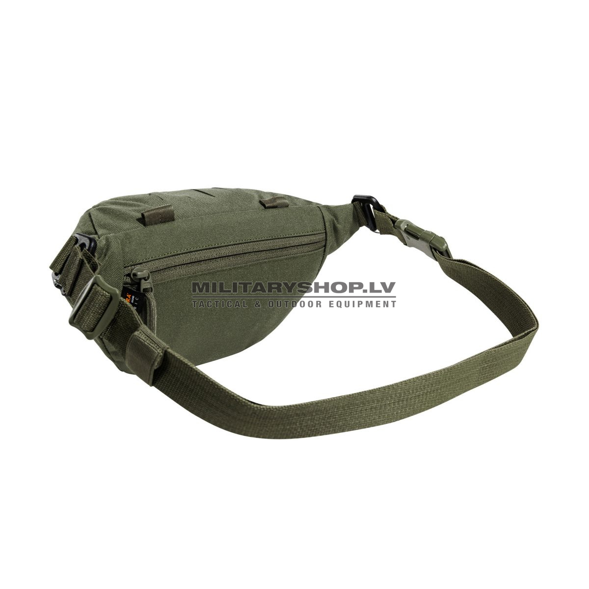 The TT Modular Hip Bag has a MOLLE hook-and-loop main compartment, a small front pocket and an additional zipper pocket on the side. The lid has a laser-cut MOLLE strip. The belt is removable and the built-in hooks allow you to attach the bag to an equipment belt, for example.