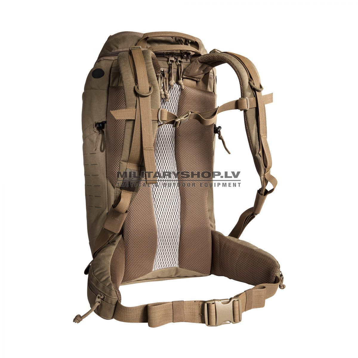 Modular universal combat backpack. The backpack has a lid pocket and laser-cut MOLLE on the sides and front. The front opening of the backpack pulls up completely. The insides have hook-and-loop sections for individual features. The hip fins are detachable. Comes with three hook-and-loop fastening accessories pouches and a hook-and-loop weapon holster.