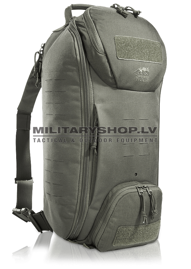 The small, tactical TT Modular Sling Pack can be worn either on the right or left side because the diagonal shoulder strap can be looped around. MOLLE on the outside offers the possibility to extend the 20 liter pack individually. The interior MOLLE hook-and-loop lining serves for the attachment of pouches or a weapon holster.