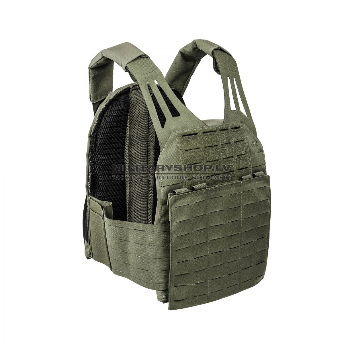 Lightweight panel carrier with laser cut MOLLE system. Thanks to the technology, the carrier looks smooth and well-ordered. Designed for SAPI panels (30 x 25 cm).