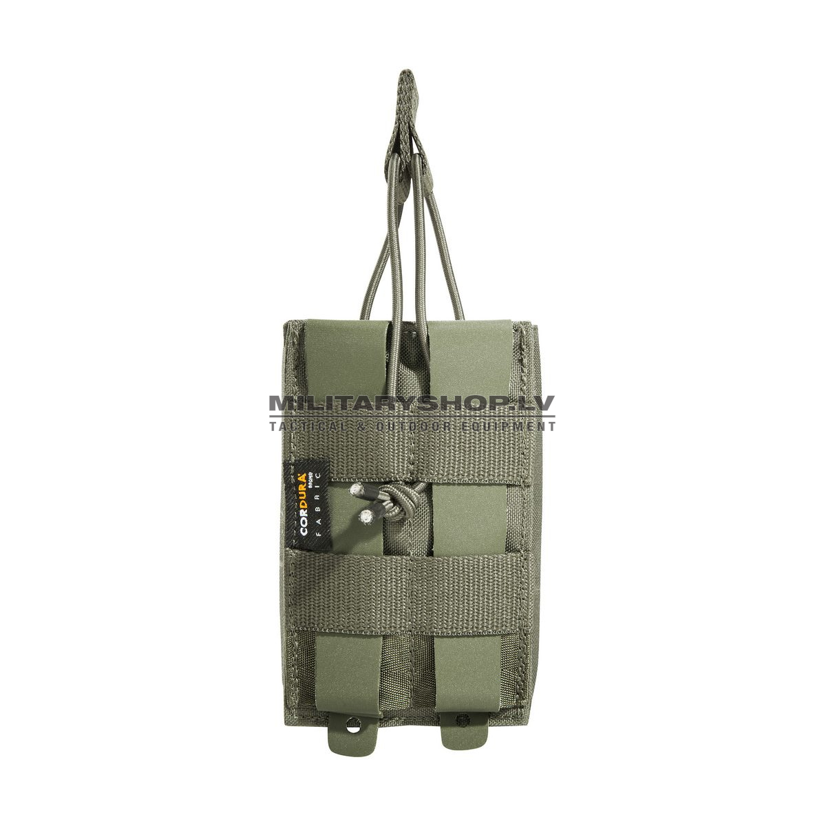 Short magazine pouch for G36 mags with bungee cord fixation. Made of CORDURA® and material with IRR treatment. Both the CORDURA® materials as well as web-bing, hook-and-loop fasteners and buckles meet the high German Bundeswehr standards TL 8305-0278 and TL 8305-0281 with regard to the IRR camouflage effect (IRR 650 – 1250nm / 10 – 42%).