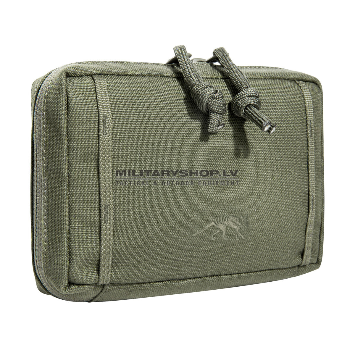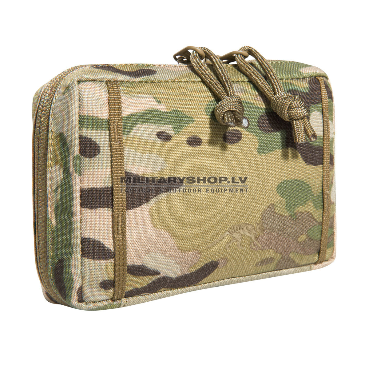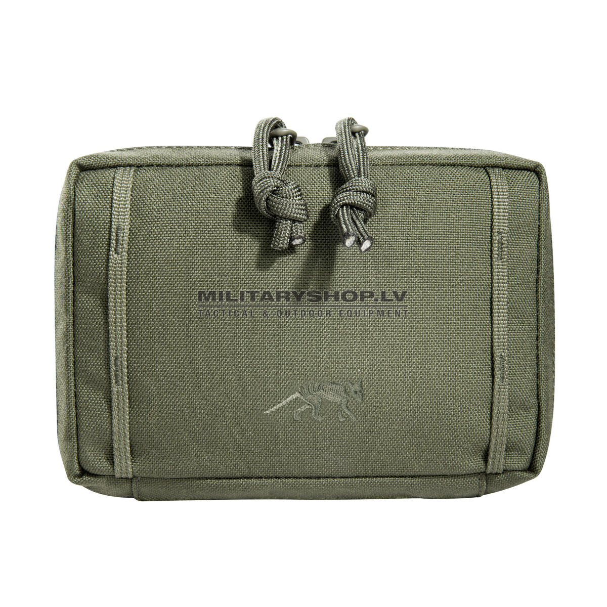 Accessory pouch with 10 x 15 x 4 cm dimensions, a large opening and the MOLLE reverse system. The inside features are a mesh pocket and elastic loops.
