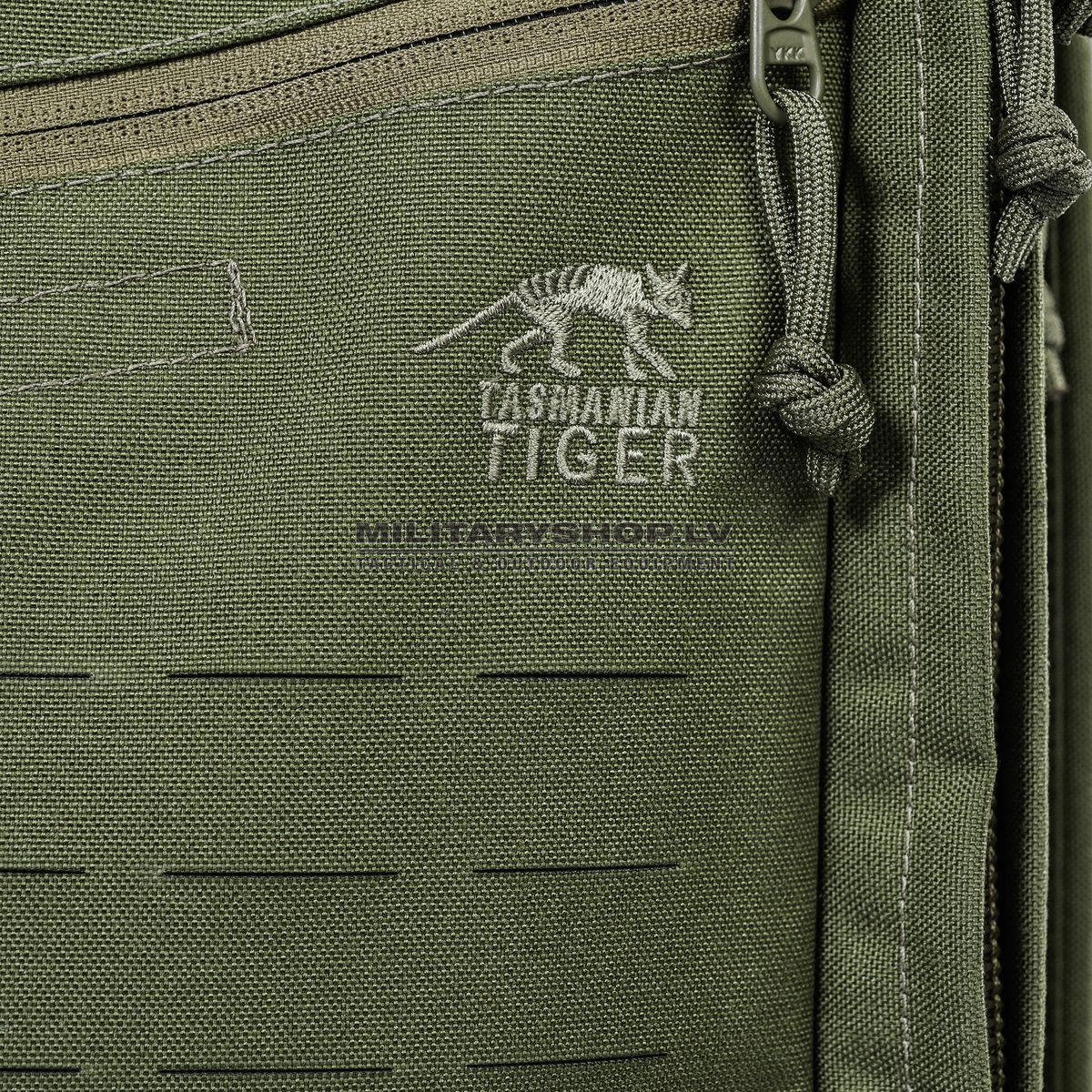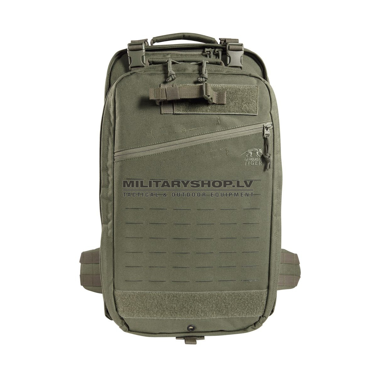 - Laser-cut molle strips on one side of the front backpack
