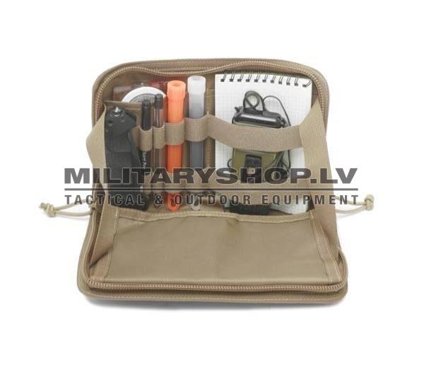 The Warrior Command Panel allows the use of navigational items maps and other admin on a protected flat clean surface. Also features an internal transparent map sleeve. The Panel has 6 MOLLE columns wide across the front and allows enough space for the attachment of extra pouches. On the inside there are 2 pockets and elastic loops to hold pens, compass, knife, chemlights, protractor, notebook etc.