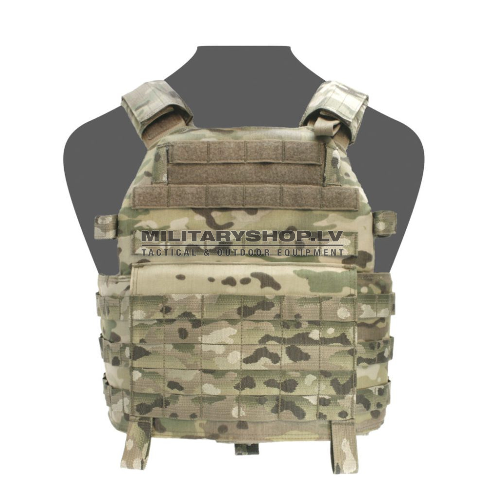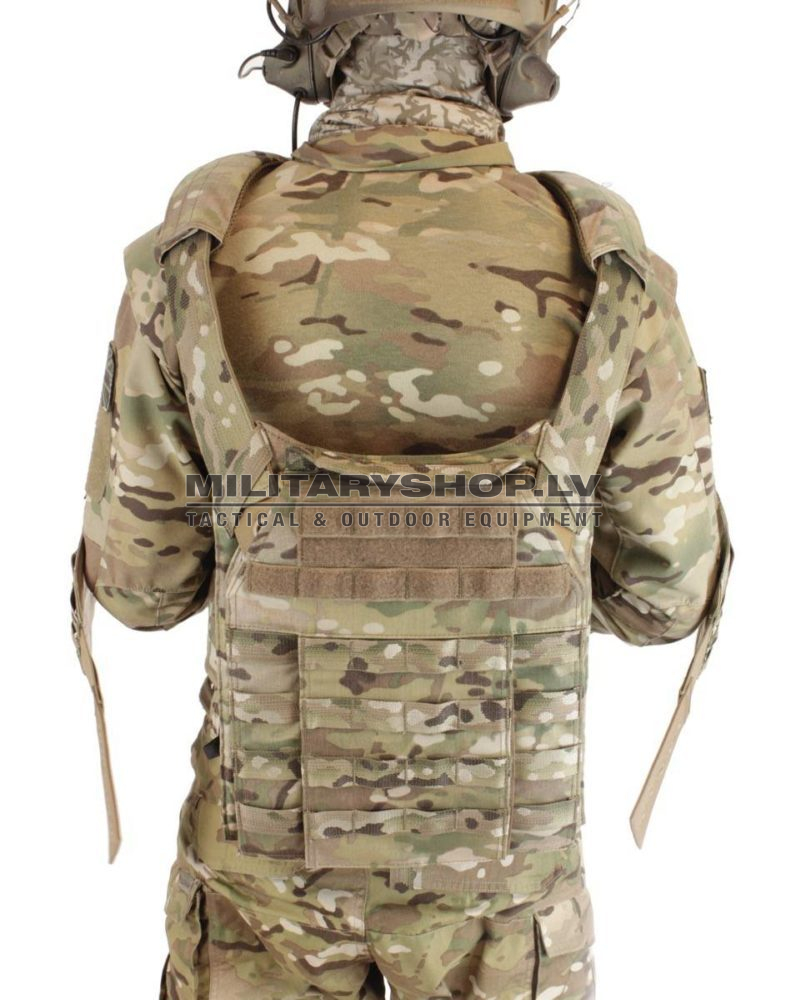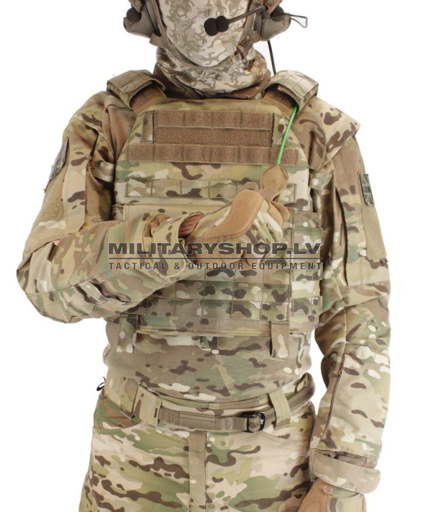 The releasable system is a lightweight carrier which accepts both soft and hard solutions in front rear and side integrated pockets. The carrier is covered all round with multiple rows of 1 inch matched camo MOLLE webbing which allows the attachment of a large selection of pouches in multiple mission specific set ups.