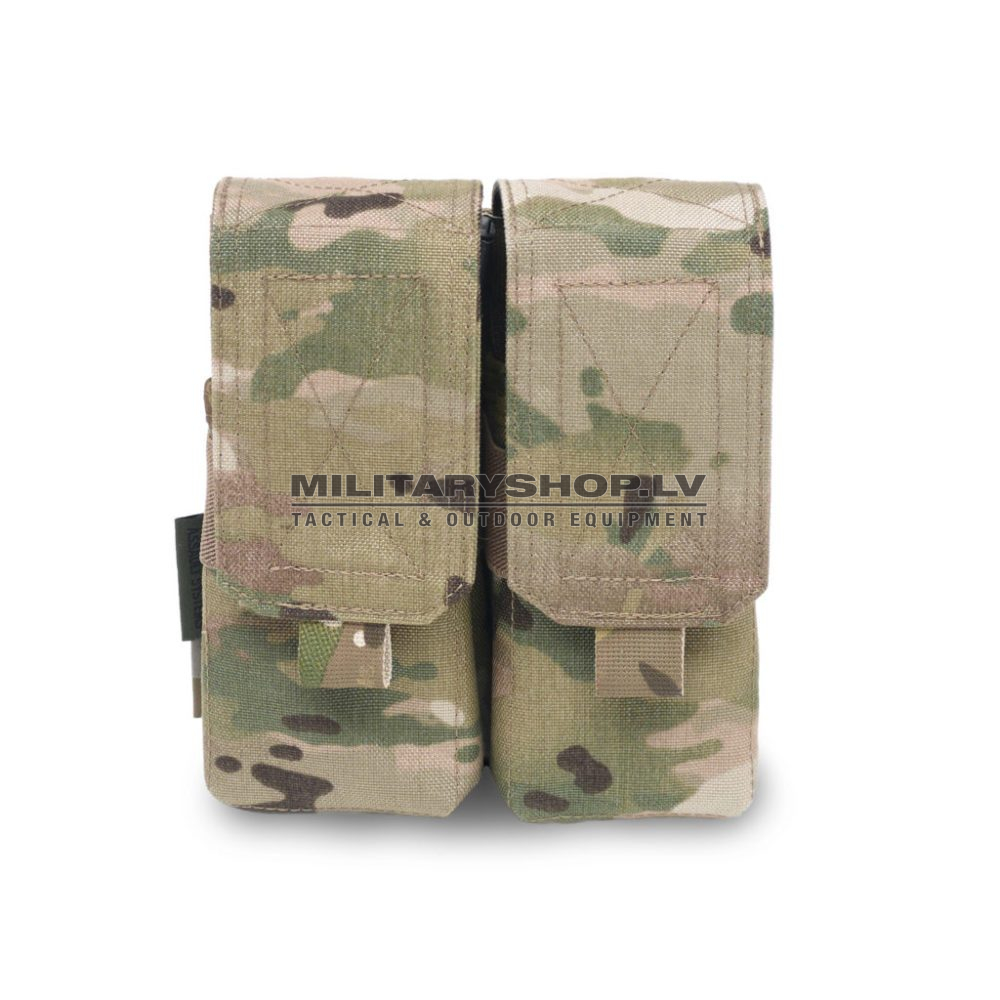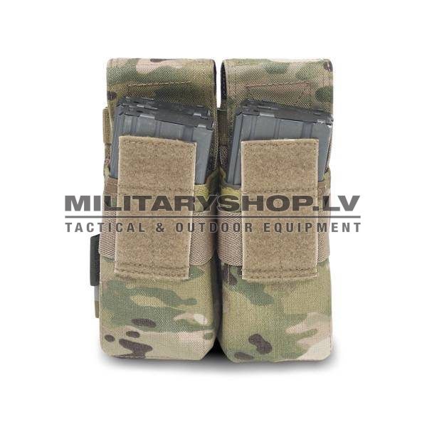 Warriors DM4 (Double M4) pouch holds 4xM4/SA80 5.56mm mags. The DM4 has a heavy duty style flap for more robust use. The DM4 takes up 4 horizontal rows of MOLLE on compatible carriers rigs and bags.