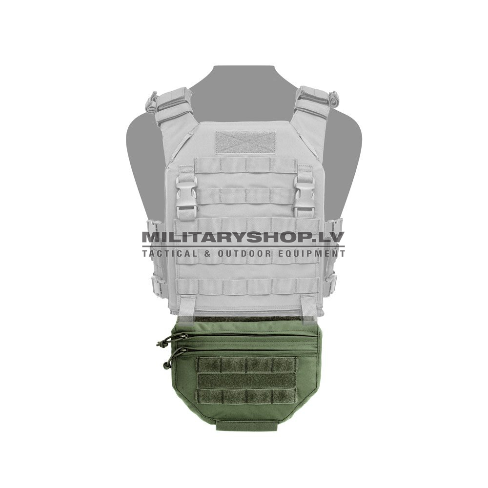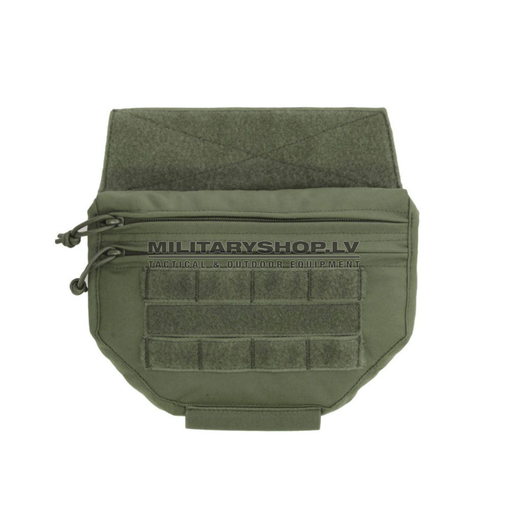 There are 2 zip pockets, the larger and main compartment is designed for storage and quick access of larger accessories and tools, Med Kit and Admin / Maps etc. The smaller pocket is good for storage of smaller items such as torches, batteries, Compass, etc. On the underside, there are 2 elastic loops for chem lights and or markers. The Drop Down Pouch can also be used as an armor add on for lower abdomen protection, we have included a rear pocket which allows a level 3a soft armor inserts to be added. The front of the pouch has 2 rows, each comprising 4 loops of MOLLE webbing with Velcro loop sewn on, ( and an additional row of loop Velcro in between ). This allows the attachment of other small pouches and or call sign and insignia patches.