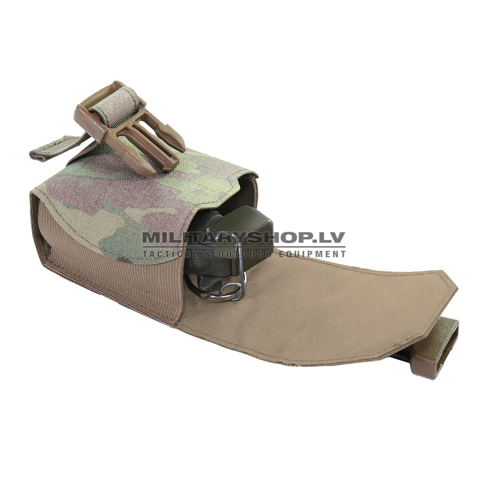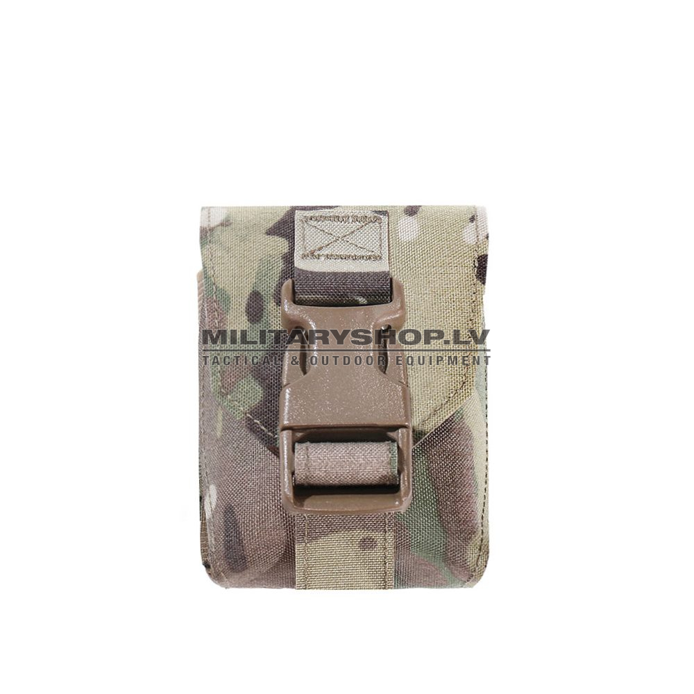 Our Laser Cut Frag Grenade Pouch is manufactured using a combination of double-layered Mil-Spec elastic and laminate. Holds a single M67 style fragmentation grenade, includes a plastic clip for single-handed silent opening.