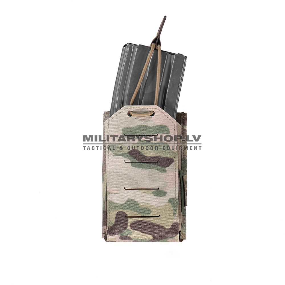 Our Laser Cut Single 5.56 Mag Pouch attaches to the full range of Warriors Belts and Carries. The W-LC-SB-556P holds a single 5.56mm x 45mm mag, and is held in place via bungee retention cord, Hypolon lining provides additional mag retention when bungee safety is removed. Each mag pouch has 4 MOLLE slots externally, allowing the attachment of additional pouches such as pistol mag pouches, CAT pouch or Multitool pouch.