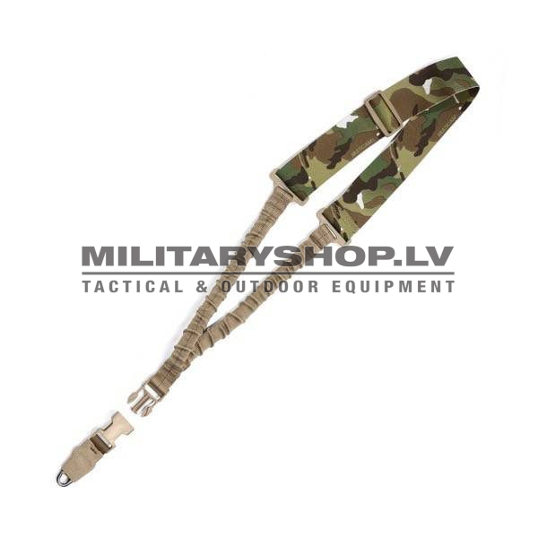 Warriors Single Point Bungee sling (SPBS) is complete with H & K hook and is ideal for transitions from left to right and weapon strikes. It is made from 2 Inch U.S. 17337 webbing with an incredible breaking strength of 2200 Lbs. All stress areas are Doubled Bar tacked with Thread. The SPBS is fully adjustable for length with 2 x 16 mm elastic bungee cords covered in 1″ Inch U.S. 5625 tubular webbing with a breaking strength of 4000Lbs.