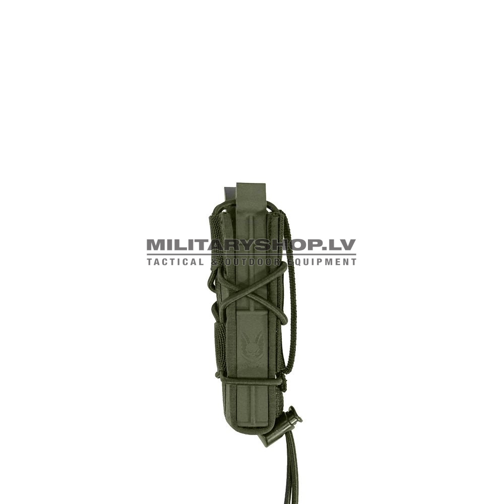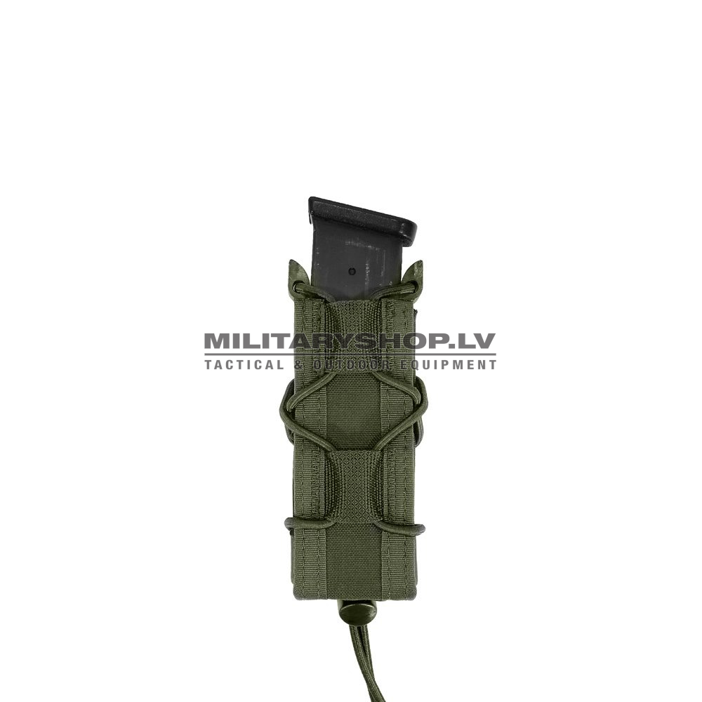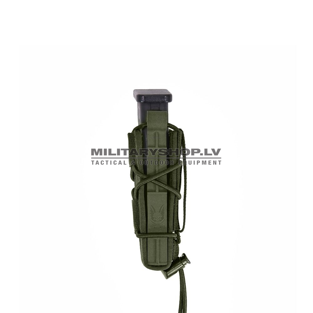 The Single Quick Mag is a versatile multi-purpose magazine pouch which holds a variety of 9mm magazines. Size adjustment is by way of laced elastic shock cord which is threaded through the side of the pouch.