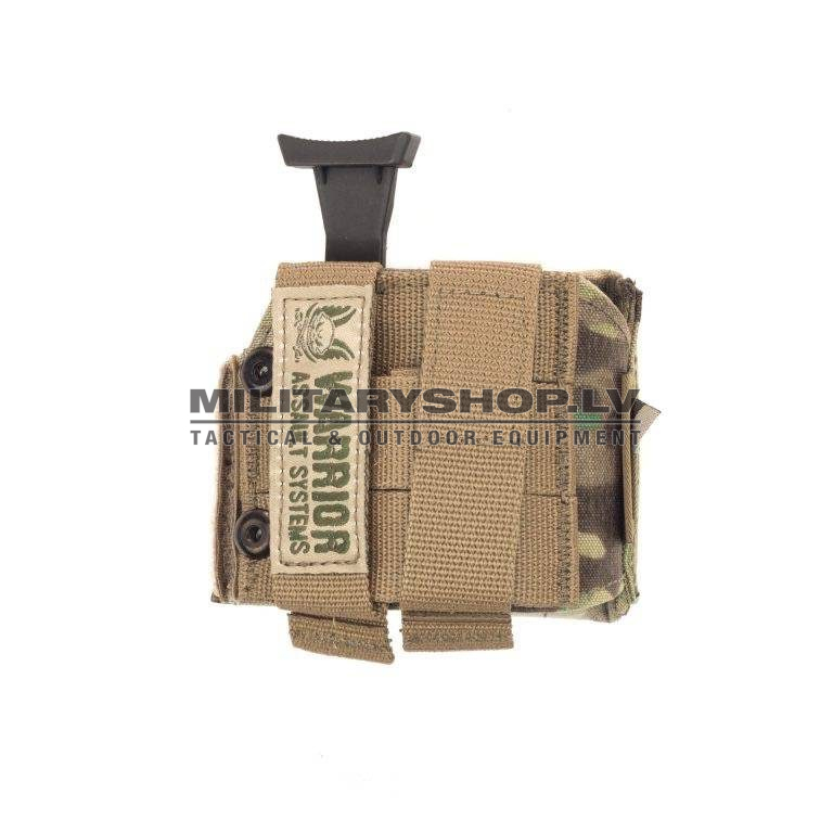 The rear of the holster has 3 rows of MOLLE webbing with 2 MOLLE arms which allows it to be attached to a diverse range of Warrior Assault Systems gear such as the PLB belt Frag Belts Cobra belts and Rigger Belts. The UPH’s MOLLE also allows it to be attached to carriers and chest rigs such as the 901.